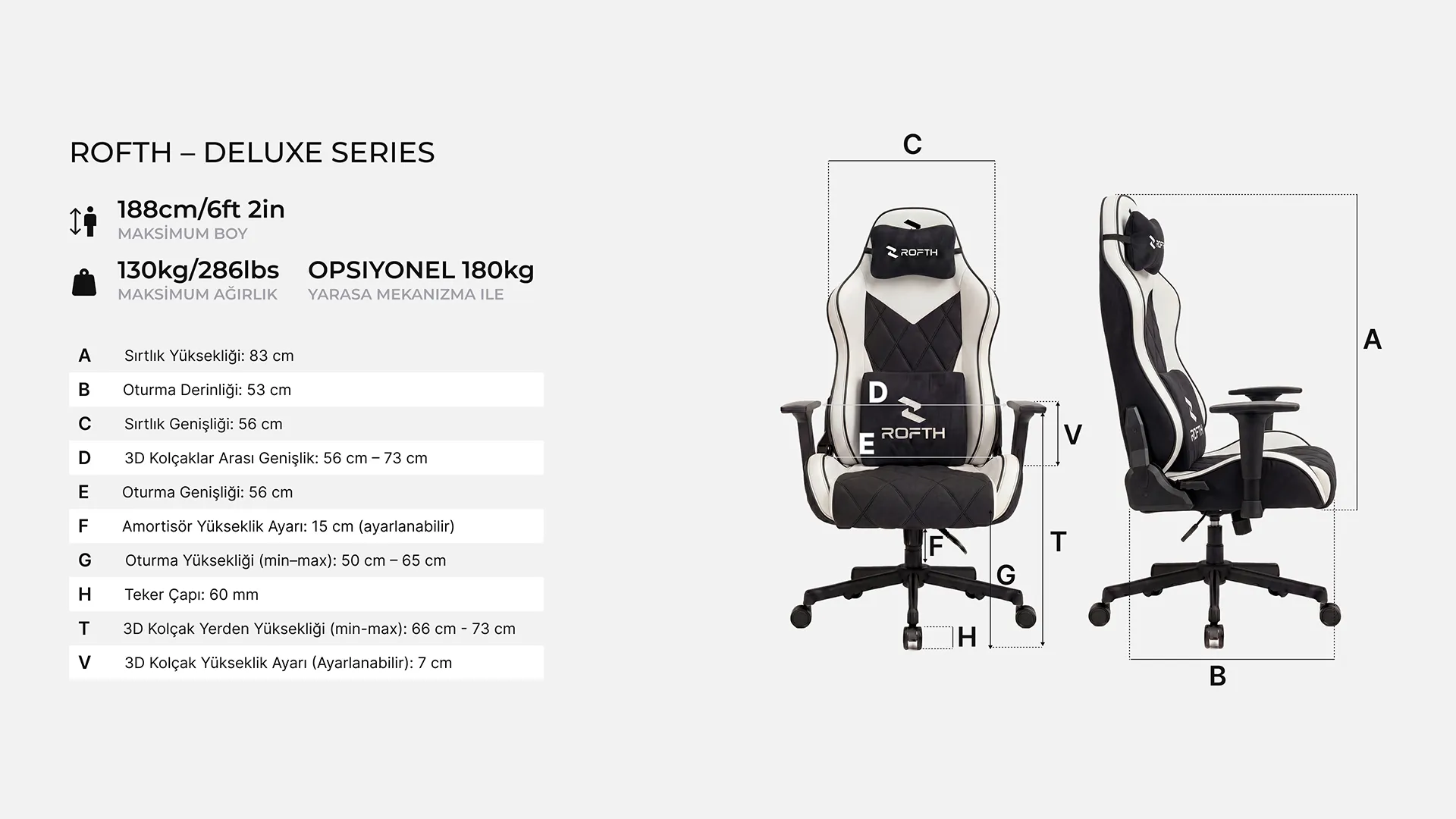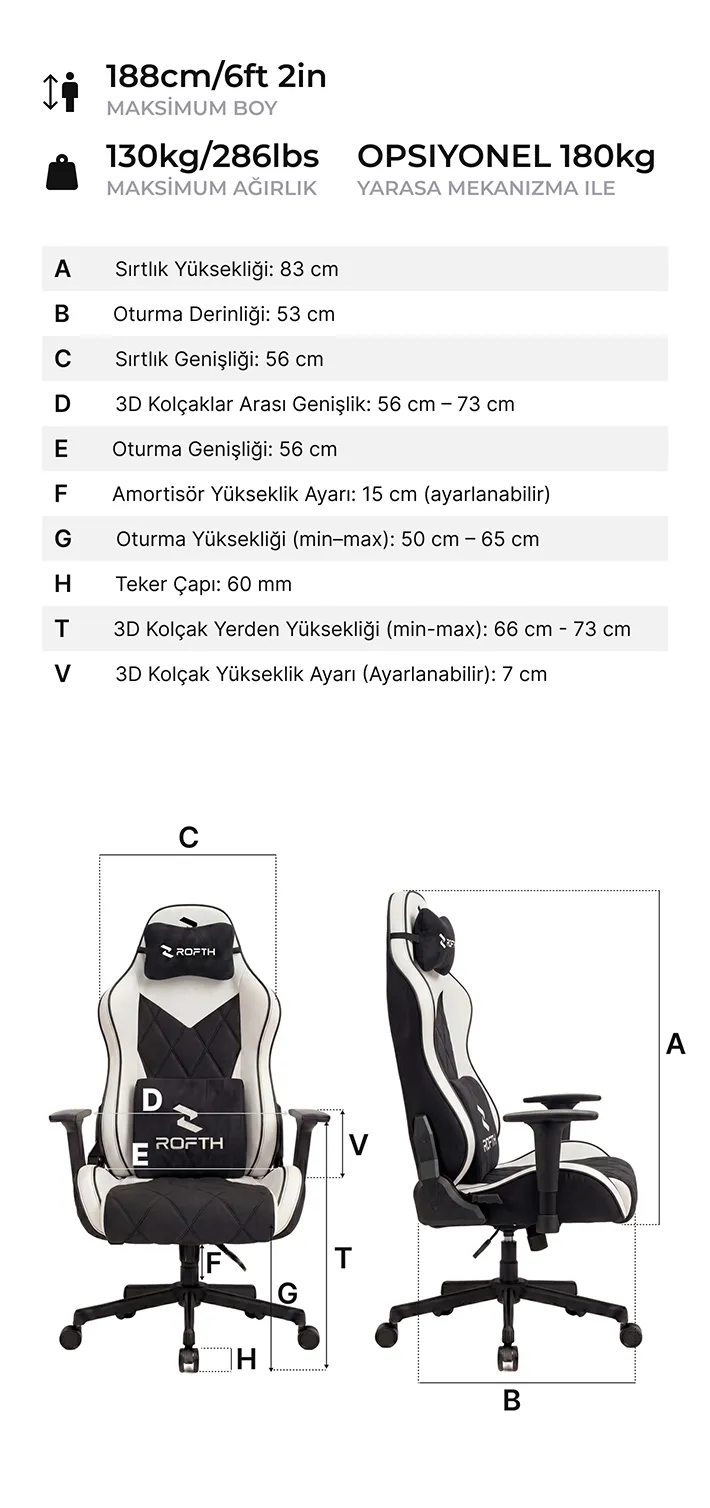 ROFTH oyuncu koltuğu modelleri 2 yıl standart garanti kapsamındadır. Üretim kaynaklı sorunlar garanti kapsamına dahildir.